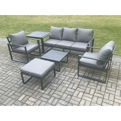 Aluminium 6 Seater Outdoor Lounge Sofa Set Garden Furniture Sets with Square Coffee Table Chair Big Footstool Side Dark Grey Fimous