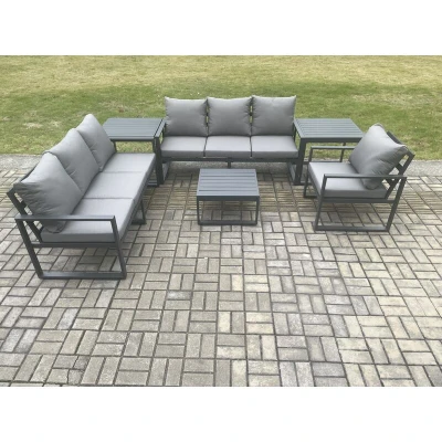 Aluminium 7 Seater Outdoor Garden Furniture Lounge Sofa Set with Square Coffee Table Chair 2 Side Dark Grey Fimous