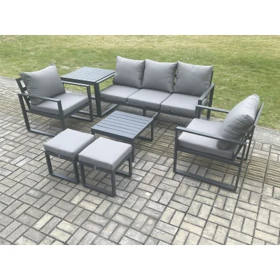 Aluminium 7 Seater Outdoor Lounge Sofa Set Garden Furniture Sets with Square Coffee Table 2 Chairs Small Footstools Side Dark Grey Fimous