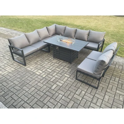 Aluminium 9 Seater Lounge Corner Sofa Outdoor Garden Furniture Sets Gas Fire Pit Dining Table Set Dark Grey Fimous