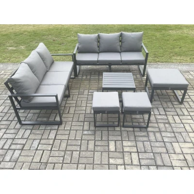 Aluminium 9 Seater Outdoor Garden Furniture Lounge Sofa Set with Square Coffee Table 3 Footstools Dark Grey Fimous