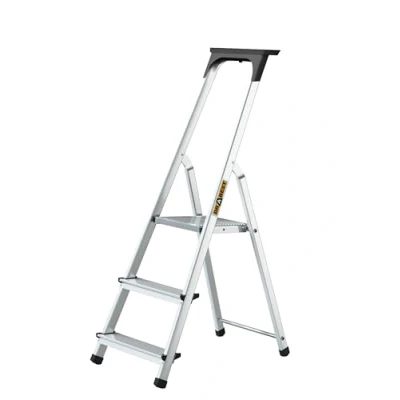 Dedicated Household Use: Designed specifically for household tasks, this aluminium ladder is your go-to solution for everyday chores and occasional renovations, providing reliable support for various tasks around the house. Sturdy Construction: Crafted from durable aluminium, this ladder offers a sturdy and durable structure that can withstand regular use. Its robust design provides stability and safety during use, making it a reliable addition to any home toolkit. Safety Features: Equipped with a 0.60m safety rail with a convenient hook for hanging buckets or tools, providing that everything you need is within reach while working at heights. The steel working platform, with its embossed surface, provides a safe and secure area for working comfortably. Enhanced Stability: Featuring special non-slip feet, this ladder offers a high safety standard while protecting your floors against scratches. The ladder's notched steps, riveted and secured with black plastic covers, further enhance stability and safety during use. Technical Specifications: Dedicated to work in households. Safe 0,60 [m] headband with a hook for a bucket. Steel working platform 0,25 x 0,26 [m] with a specially embossed surface guarantees safe work. Notched steps riveted and secured with black plastic covers. Additional belts on ALD 6, 7, 8 models. Load capacity max. 125 kg.