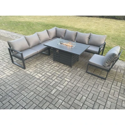 Aluminium Lounge Corner Sofa Outdoor Garden Furniture Sets Gas Fire Pit Dining Table Set Dark Grey Fimous