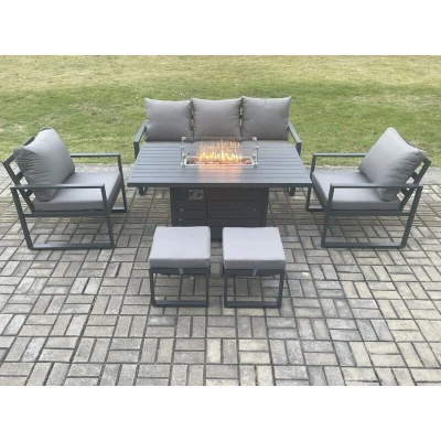 Aluminium Outdoor Garden Furniture Set Gas Fire Pit Dining Table Heater Burner with 2 Arm Chair Small Footstools Dark Grey 7 Seater Fimous