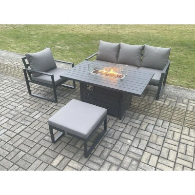 Aluminium Outdoor Garden Furniture Set Gas Fire Pit Dining Table Heater Burner with Big Footstool Dark Grey 5 Seater Fimous