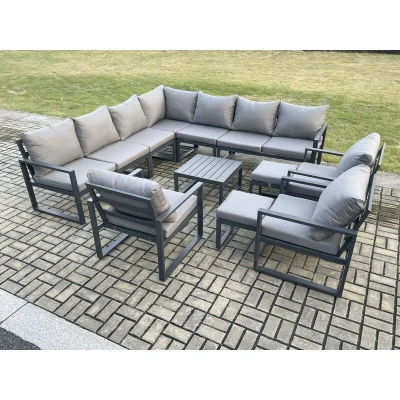 Aluminium Outdoor Garden Furniture Set Lounge Corner Sofa 3 Pcs Chair Square Coffee Table Sets with 2 Small Footstools Dark Grey Fimous