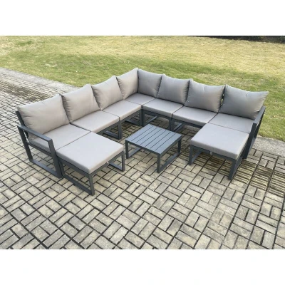 Aluminium Outdoor Garden Furniture Set Lounge Corner Sofa Square Coffee Table Sets with 2 Big Footstools Dark Grey Fimous