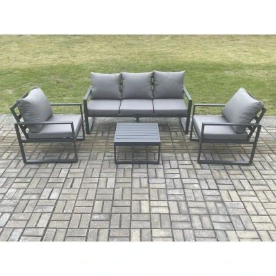 Aluminium Outdoor Garden Furniture Set Lounge Sofa 2 pc Chairs Square Coffee Table Sets Dark Grey Fimous