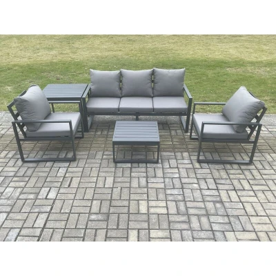 Aluminium Outdoor Garden Furniture Set Lounge Sofa 2 pc Chairs Square Coffee Table Sets with Side Dark Grey Fimous
