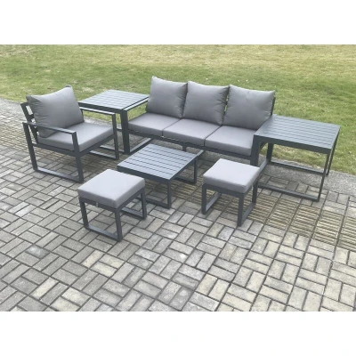 Aluminium Outdoor Garden Furniture Set Patio Lounge Sofa Chair with Square Coffee Table 2 Side Tables Small Footstools Conservatory Dark