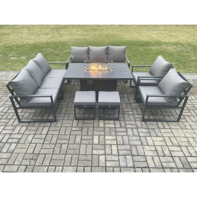 Aluminium Outdoor Garden Furniture Set Patio Lounge Sofa Gas Fire Pit Dining Table with 2 Small Footstools Dark Grey Fimous
