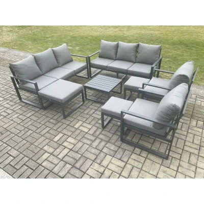 Aluminium Outdoor Garden Furniture Set Patio Lounge Sofa with Square Coffee Table 2 Armchairs 3 Footstools Dark Grey Fimous