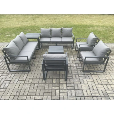 Aluminium Outdoor Garden Furniture Set Patio Lounge Sofa with Square Coffee Table 3 Armchairs Side Dark Grey Fimous