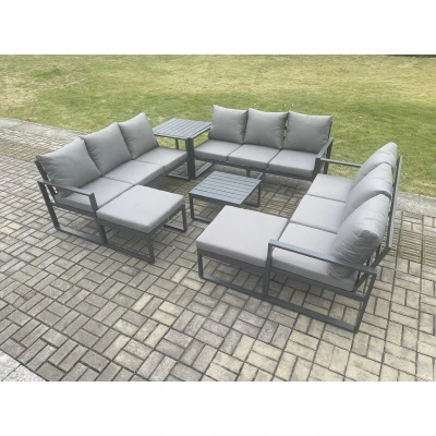 Aluminium Outdoor Garden Furniture Set Patio Lounge Sofa with Square Coffee Table Side 2 Big Footstools Conservatory Dark Grey Fimous