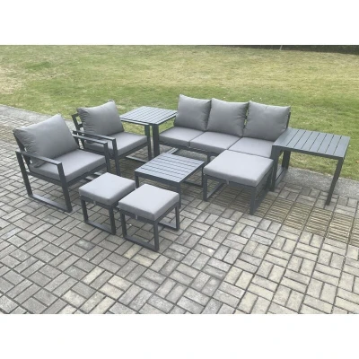 Aluminium Outdoor Lounge Sofa Set Garden Furniture Sets with Square Coffee Table 2 Chairs 3 Footstools Side Tables Dark Grey 8 Seater Fimous