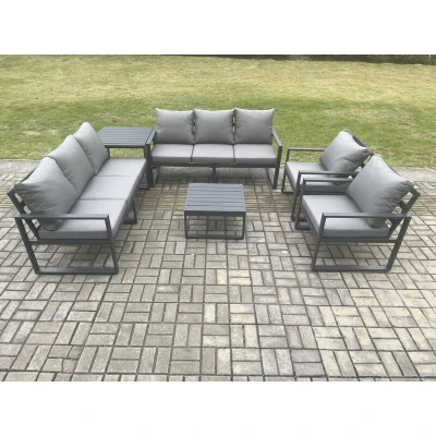 Aluminium Outdoor Lounge Sofa Set Garden Furniture Sets with Square Coffee Table 2 Chairs Side Dark Grey 8 Seater Fimous