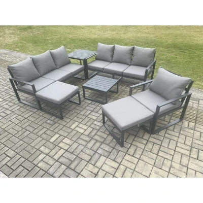 Aluminium Outdoor Lounge Sofa Set Garden Furniture Sets with Square Coffee Table Chair 2 Big Footstools Side Dark Grey Fimous
