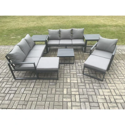 Aluminium Outdoor Lounge Sofa Set Garden Furniture Sets with Square Coffee Table Chair 2 Big Footstools Side Tables Dark Grey Fimous