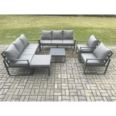 Aluminium Patio Outdoor Garden Furniture Lounge Sofa Set with Square Coffee Table 2 Chairs Big Footstool Dark Grey Fimous