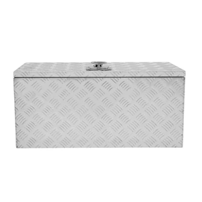 ManoManoGeneral description Upgrade your tool storage with our heavy-duty aluminium tool box, designed to offer exceptional functionality and security for professional tradespeople and DIY enthusiasts. With a generous 102 litre storage capacity, this versatile tool box is suitable for a wide range of applications. Ideal for fastening onto trailers or the back of pickups, this tool box is perfect for securely storing tools, straps, and coupling locks, providing you with peace of mind wherever you go. Constructed from aluminium checker plate, this tool box is engineered for maximum strength and durability. Its fully waterproof design, complete with a rubber seal around the lid and opening, prevents water and dirt from entering, ensuring all items inside remain clean and dry. The robust welded construction further enhances its durability, making it a reliable companion for tough environments. Security is paramount with our aluminium tool box, which is fully lockable and comes with two keys,