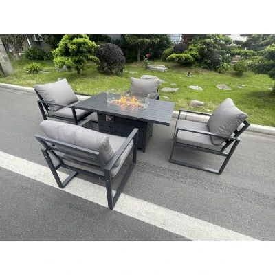 Aluminum Top 4 Seat Garden Furniture Dining Set Gas Fire Pit Table And Chairs Burner Heater Patio Outdoor Dark Grey Fimous