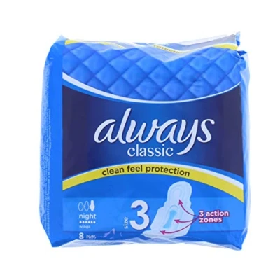 Always Classic Night (Size 3) Sanitary Napkins with Wings 8 Count (Pack of 1)