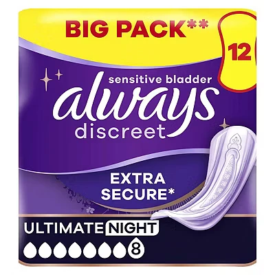 Boots15 Advantage card points. Always Discreet Incontinence Pads Women Ultimate Night 12 Count Extra Secure & Discreet FREE Delivery on orders over 45 GBP.