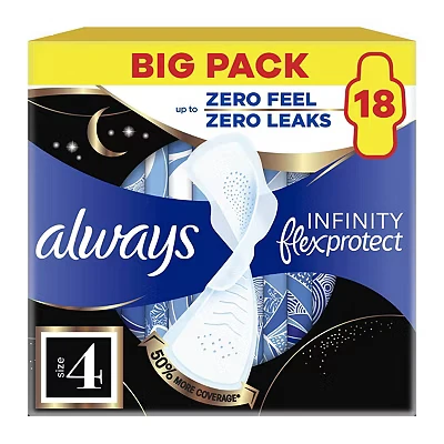 Boots15 Advantage card points. Always Infinity FlexProtect Sanitary Towels Night Extra Size 4 With Wings 18 Pads Unscented FREE Delivery on orders over 45 GBP.