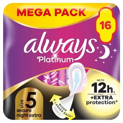 Always Platinum Secure Night Extra (Size 5) Sanitary Towels with Wings 16 Pads