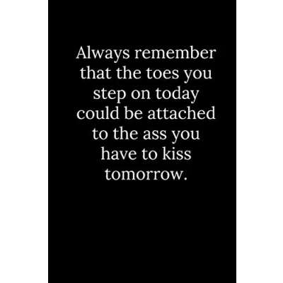 Always remember that the toes you step on today could be attached to ass have kiss tomorrow.