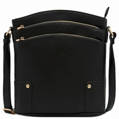 ALYSSA Triple Zip Pocket Large Crossbody Bag, White, One Size
