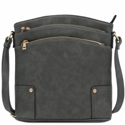 Alyssa Triple Zip Pocket Large Crossbody Bag, Dark Gray, One Size