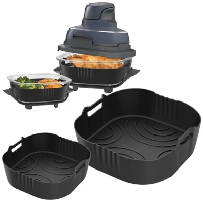Alyvisun 2PCS Air Fryer Liners Silicone, Reusable for 3.8L & 1.4L, Filter Grease Airfryer Silicone Liners, Resulting in Crispier Food and Healthier Eating