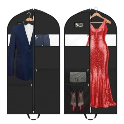 [Partitioned Storage] This clothes storage bag features three pockets that help you separate and organize your clothing and accessories, making it easy to pair outfits for different occasions [Durable & Waterproof] Made from high-quality non-woven fabric, this dress bags covers long is designed for enhanced tear and abrasion resistance, at the sametime offering waterproof protection for your clothes during travel or storage [Extra Large Capacity] With a suit covers size of 130*60*10 cm, this dress covers garment bags is perfect for accommodating various types of long clothing, including suits, dresses, and coats, offering ample space for your wardrobe essentials [Clear Window & Card Slot] The long dress bags covers is equipped with a clear window for easy viewing and access to your clothes. Additionally, the card slot allows you to store small items like documents, ID cards, or travel necessities [Storage & Travel Ready] Its larger size and width make this wedding dress bag perfect for daily storage, as well as for keeping your clothes organized and wrinkle-free during business trips