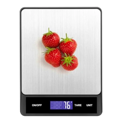 【Precise Weighing】The kitchen scale is equipped with a highly sensitive sensor, enabling precise measurements with a maximum capacity of 5 kg/11 lbs and a minimum weight of 1 g. Whether for cooking, baking, or managing daily diet, it easily meets all your needs. 【Unit shift and Tare】The food scale supports 5 units conversion(g, kg, lb, ml, oz) and features a tare function. Simply place a container on the scale to reset it to zero, then add ingredients to measure only the actual weight of the food, very simple and efficient to operate. 【Clearer Reading】Unlike traditional small integrated screens, this food weighing scale features an enlarged tilted display with high definition, ensuring the readings are not obstructed even when weighing large containers, making it clearer and more intuitive to read. 【Overload and Low Battery Reminder】If the weight on the digital kitchen scale platform exceeds 15 kg, the screen will display "O_Ld" to remind you to reduce the weight; when the battery is low, "Lo" will appear, reminding you to replace the batteries for more secure use. 【Practical Kitchen Assistant】This electronic cooking scale easily measures various kinds of ingredients such as rice, flour, milk, coffee beans. The surface is made of waterproof stainless steel, easy to clean and maintain. Its compact size also allows for easy storage in cabinets.