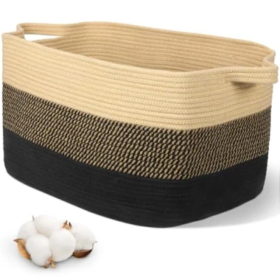 Alyvisun Large Storage Baskets, Laundry Toy Basket for Bedroom, Living Room, Baby Rectangle Cotton Woven Toys, Blankets, Towels, Dirty Clothes, 55x40x30 cm