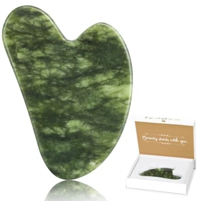 [Premium Green Jade] Crafted from jade, Our gua sha stones offer a naturally cool, smooth surface texture,long-lasting, easy to care and handy (Tips:Natural textures in jade are normal crystal features, not scratches or damage) [Calms & Reduces Puffiness] For enhanced effectiveness, chill the gua sha board in the refrigerator before use. Its cooling touch may help reduce morning facial puffiness, leaving your skin refreshed and at its best all day [Shape Your Jawline] With smooth, ergonomic curves that perfectly adapt to your face and jawline contours, this gua sha massage tool effectively lifts skin, improve jawline [Widely Application] Alyvisun all-in-one guasha massage board isn’t just for facial care—it’s equally beneficial for your neck, back, and other body areas. Regular massages may help improve muscle fatigue, and promote overall relaxation and well-being [An Exquisite Gift ] Packaged elegantly in a colorful gift box.Whether you use it yourself or send it to your friends, mothers, or anyone, the facial gua sha tool can bring you unexpected surprises