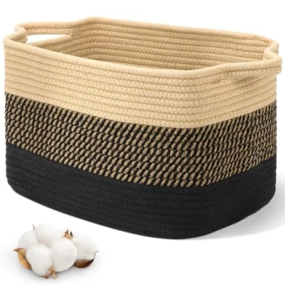 Alyvisun Small Storage Baskets, Laundry Toy Basket for Bedroom, Living Room, Baby Rectangle Cotton Woven Toys, Blankets, Towels, Dirty Clothes, 33x25.5x23 cm