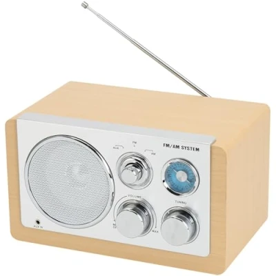 AM/FM Radio Denver Light Wood Model AUX Input Tuner Brown Color