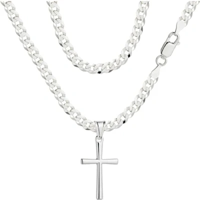 AMAR PRAGNA Men's Necklace, 925 Sterling Silver, Curb Chain with Cross Pendant, Solid King Italian Quality Jewellery, 55 cm, Silver