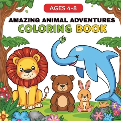 Amazing Animal Adventures Coloring Book:: 40 Fun Safari, Ocean & Forest Animals for Kids Ages 4 8.