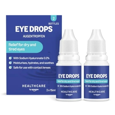 Packaging may vary from images shown. This product was previously an Amazon Basic Care product. Now it’s a part of the Healthcare by Amazon brand. The product is the exact same formulations, size, quality and the supplier is the same Pack of 2 x 15ml Moisturises, hydrates, and soothes A natural tear lubricant that provides effective relief for dry, tired, and sensitive eyes, as well as the associated feelings of irritation, grittiness, and discomfort Used to restore the proper wettability and hydration of contact lenses, particularly soft, while improving tolerability during wear Contains sodium hyaluronate which possesses high viscoelastic properties, increases lubrication and comfort especially on dry eyes It increases tear fluid in response to ocular damage or during the process of wound healing of the cornea It has a great capacity for holding water molecules and, while hydrated, shows a visco-elastic behaviour which makes it an excellent lubricant Contact lens friendly. These eye drops are safe for use with contact lenses without having to remove them