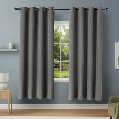 100% blackout curtain panel (set of 2) for blocking sunlight and UV rays, reducing outside noise and ensuring privacy. Black fabric with metal eyelets; fits any standard curtain pole Machine washable; use a steamer or iron to remove wrinkles if needed, avoiding direct contact with front-facing fabric. Ready-made pair of curtains – 2 panels per pack. Size per panel: 132cm width x 213cm drop. 4cm eyelet heading This product contains 100% Global Recycled Standard (GRS) certified recycled polyester