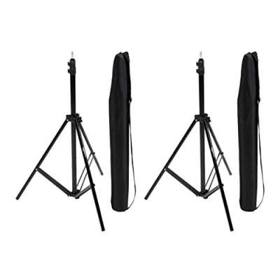 ADJUSTABLE HEIGHT: Pack of 2. Reach the perfect lighting angle with adjustable height from 0.85 to 2.04 m (33.46 to 80.31 inches), ideal for various setups in photo studios or on-location shoots. VERSATILE COMPATIBILITY: Equipped with a 0.63 cm (0.24 inches) screw tip, compatible with standard lights, strobe flash lights, and backgrounds for seamless integration into your photography setup. DURABLE ALUMINUM CONSTRUCTION: Strong yet lightweight aluminum construction with a sleek black finish ensures durability and easy portability for frequent repositioning and transportation. STABLE SUPPORT: Three legs with outward angles and a center post provide reliable stability, with a maximum load capacity (from the bottom up): 3.18 kg in the first section, 2.49 kg in the second section and 0.50 kg in the third section, ensuring secure positioning of your lighting equipment. CONVENIENT PORTABILITY: Folds down to a compact size of 0.72 m (28.5 inch) for easy storage and includes a carrying case with a comfortable shoulder strap for hassle-free transportation to any location.