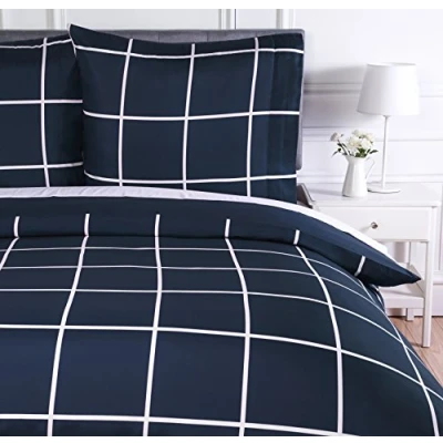 Amazon Basics 2 Piece Microfibre Bedding Duvet Cover Set, 135 x 200 cm & 1 Pillowcase 80 cm, Navy Blue Plaid