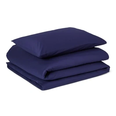 Amazon Basics 2 Piece Soft Organic Cotton Single Duvet Cover Set, 135 x 200 cm & 1 Pillowcase 50 80 cm, Navy Blue