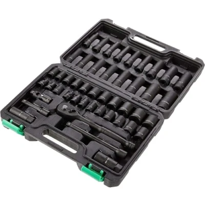 Amazon Basics 46 Piece 3/8 Inch Drive Shallow & Deep Socket Set, 72 Teeth Reversible Ratchet, SAE/Metric Size, With Carrying Case, 13.1 x 9.7 3 inches(Previously Denali brand)