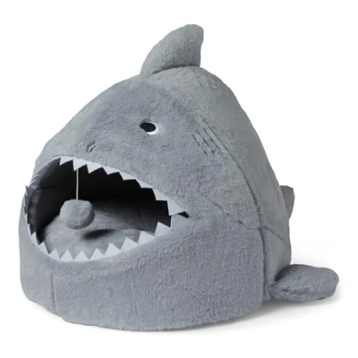 Plush cat bed with cute shark design offers your cat, small dog or other small pet a comfortable place to rest Soft polyester fabric and fluffy cushioning; enclosed pet bed design helps reduce anxiety in nervous pets Cave-shaped cat hut helps maintain body warmth for a cosy resting spot they'll return to time and time again. Non-slip bottom keeps pet bed from shifting or sliding; includes dangle cat toy Machine washable pet bed covers are removable, reversible and provide all-season comfort