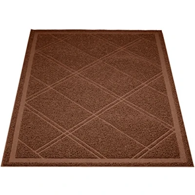 Cat-litter mat minimizes tracked litter and helps protect floors Litter-trapping grooves in a crisscross pattern of diamonds and a deep border along the edge Soft step-able surface ensures comfort for sensitive kitty paws Durable PVC material; elegant style in a solid Brown colour Measures 35 by 24 inches (LxW)
