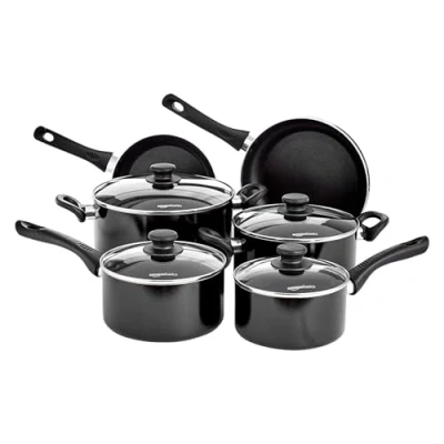 Amazon Basics Ceramic Non Stick Induction 6 Piece Cookware Set, with Lids